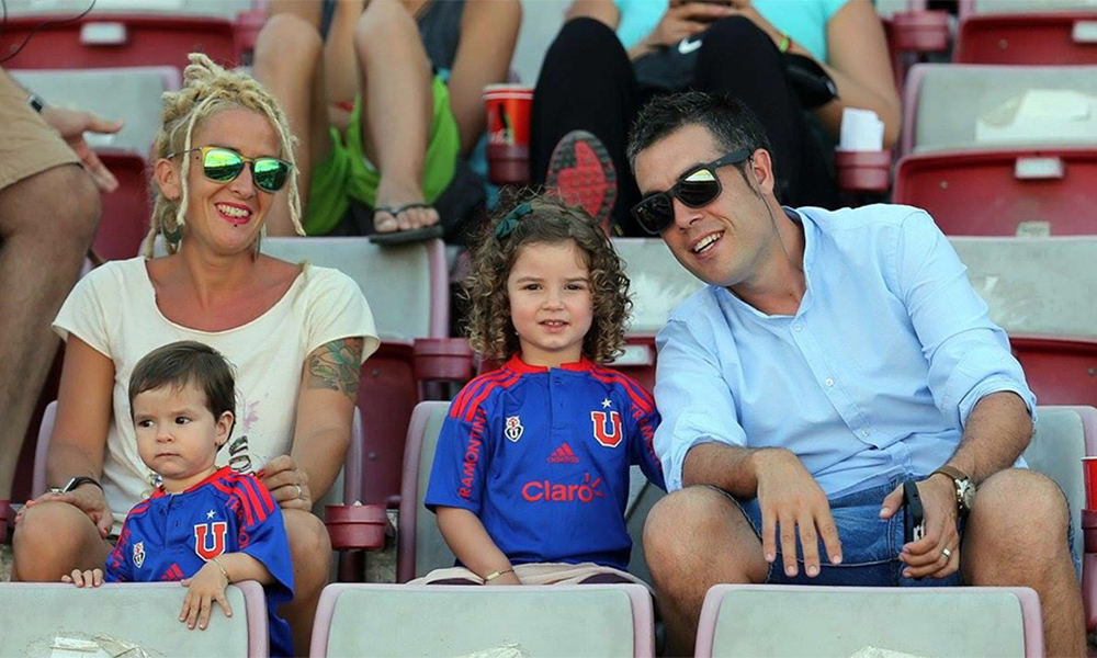 Jonatan Cabanelas junto a su mujer y sus hijas durante un partido de la Universidad de Chile. // Foto: Jonatan Cabanelas