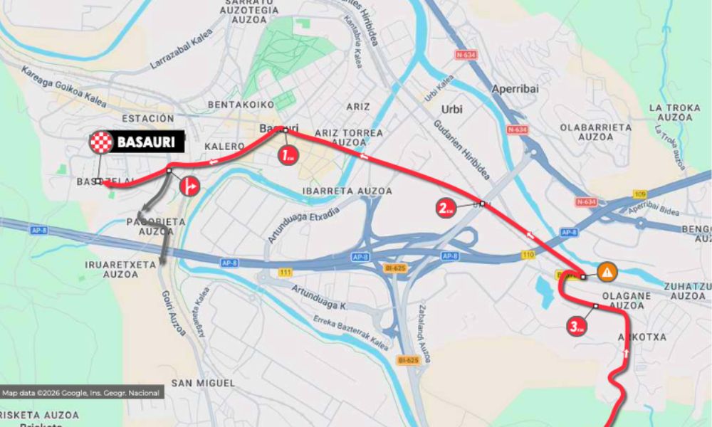 En los últimos kilómetros, la carrera regresará a Basauri por la carretera de Etxerre para encarar la recta final. Los ciclistas subirán por la calle Lehendakari Agirre hasta el cruce con Nagusia, donde girarán a la izquierda en dirección al Ayuntamiento, antes de afrontar el último esfuerzo por Basozelai, donde estará situada la línea de meta. Será precisamente este barrio el epicentro de una jornada que será retransmitida en más de 150 países. Basozelai concentrará el ambiente festivo con actividades abiertas a la ciudadanía y sorteos, entre ellos el del maillot amarillo, y acogerá como acto central la creación de un gran mosaico humano con el logotipo del municipio, que será grabado desde el helicóptero de la carrera y aspira a convertirse en una imagen icónica del día.